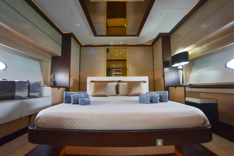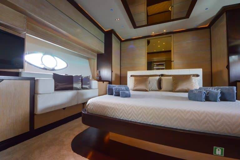 Guests are provided with three cabins for their accommodation: two cozy cabins situated midship, each boasting spacious showers and all essential amenities for a comfortable stay, along with the owner’s cabin located at the bow. The well-appointed and brightly lit cabins ensure guests can indulge in the ultimate onboard experience, even during extended cruises.