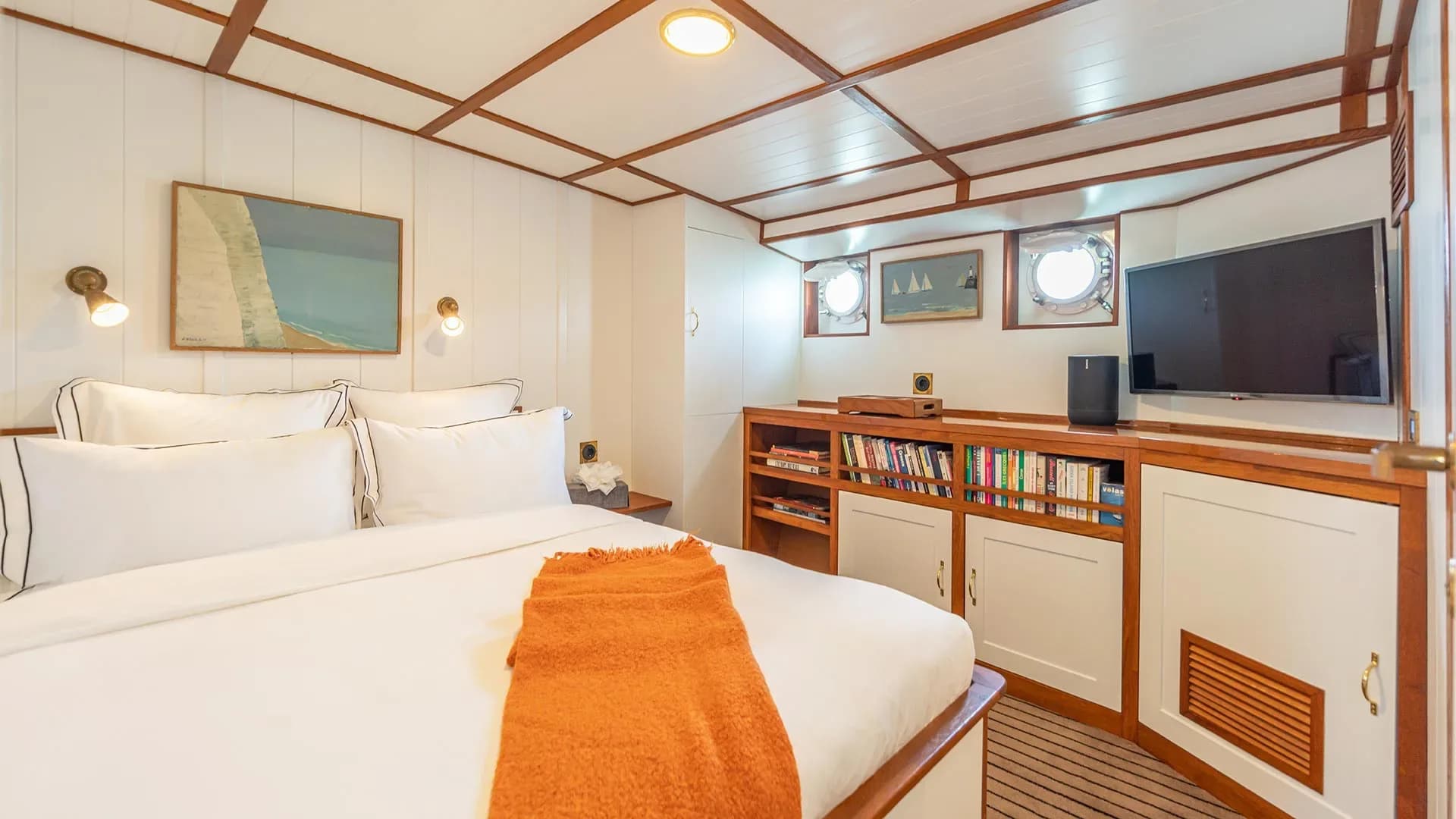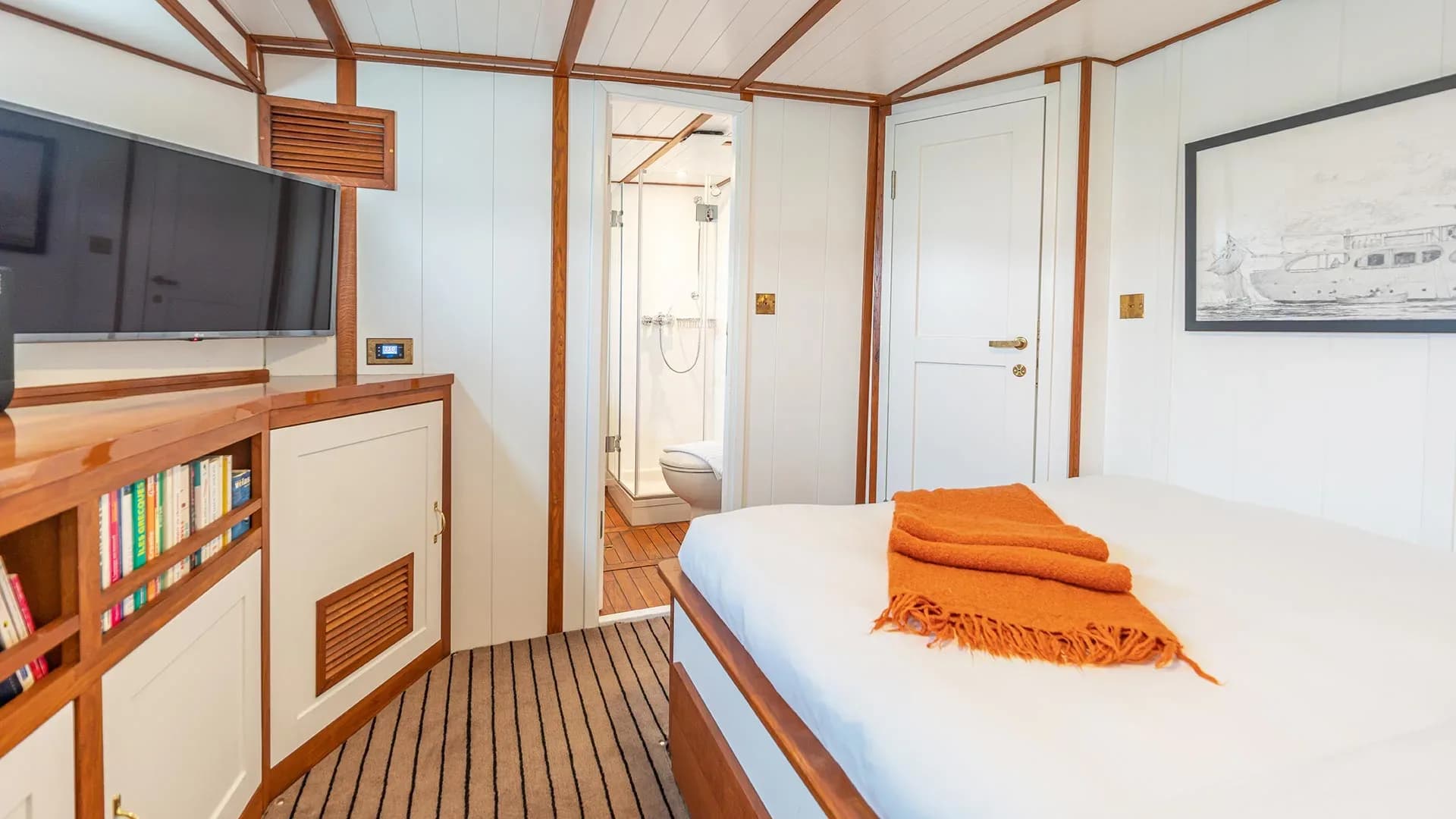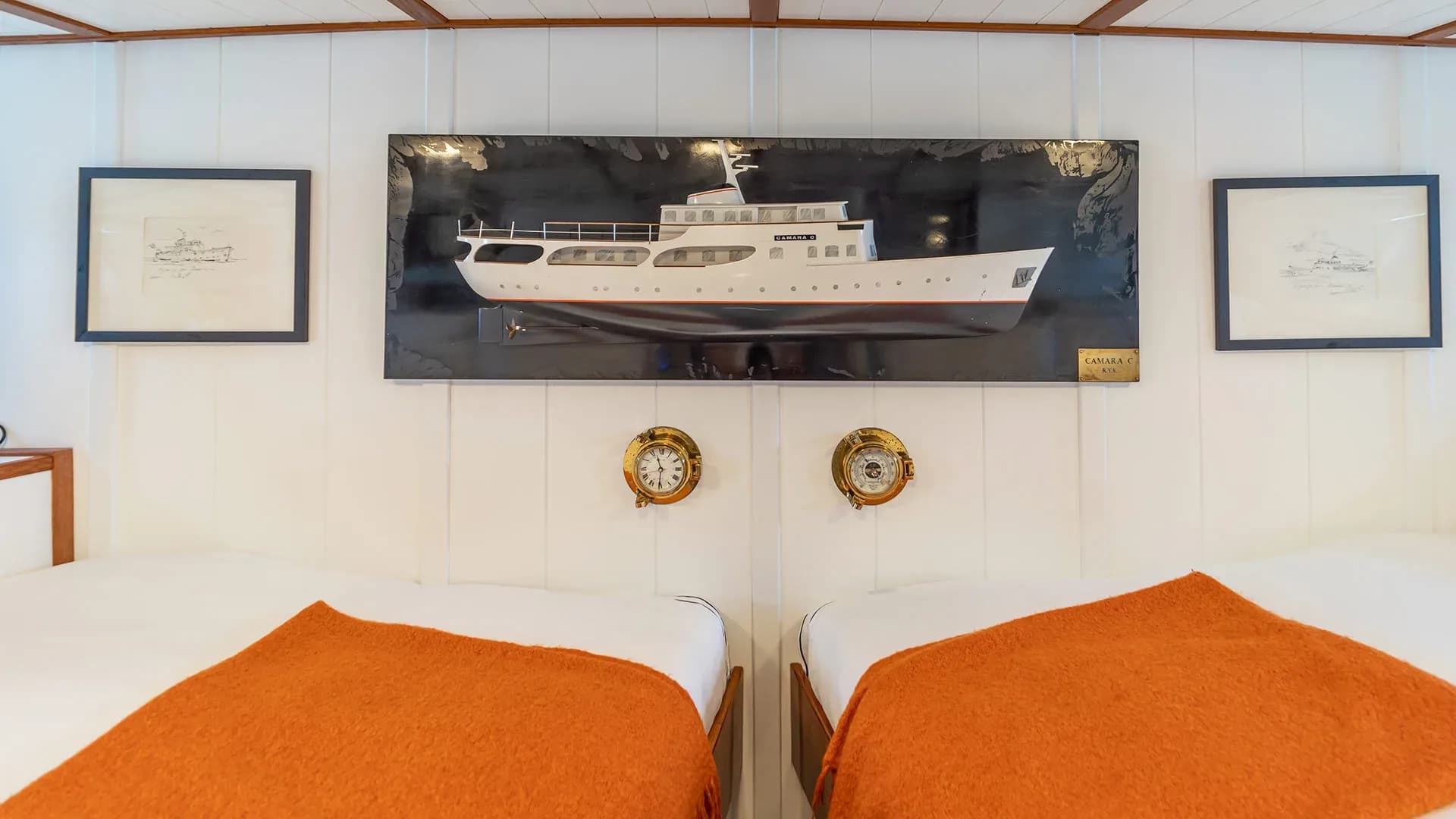 CAMARA C offers impeccable guest accommodation for up to 12 guests across 6 suites. The bed configuration includes 1 king, 3 queen, 1 double, and 2 single beds, providing a comfortable and personalized retreat for each guest. Every suite is meticulously designed with attention to detail, creating a serene haven onboard.