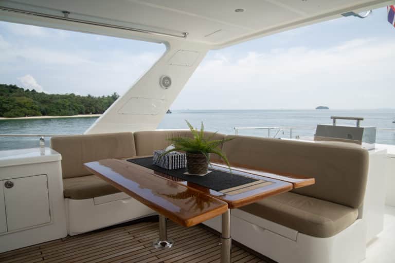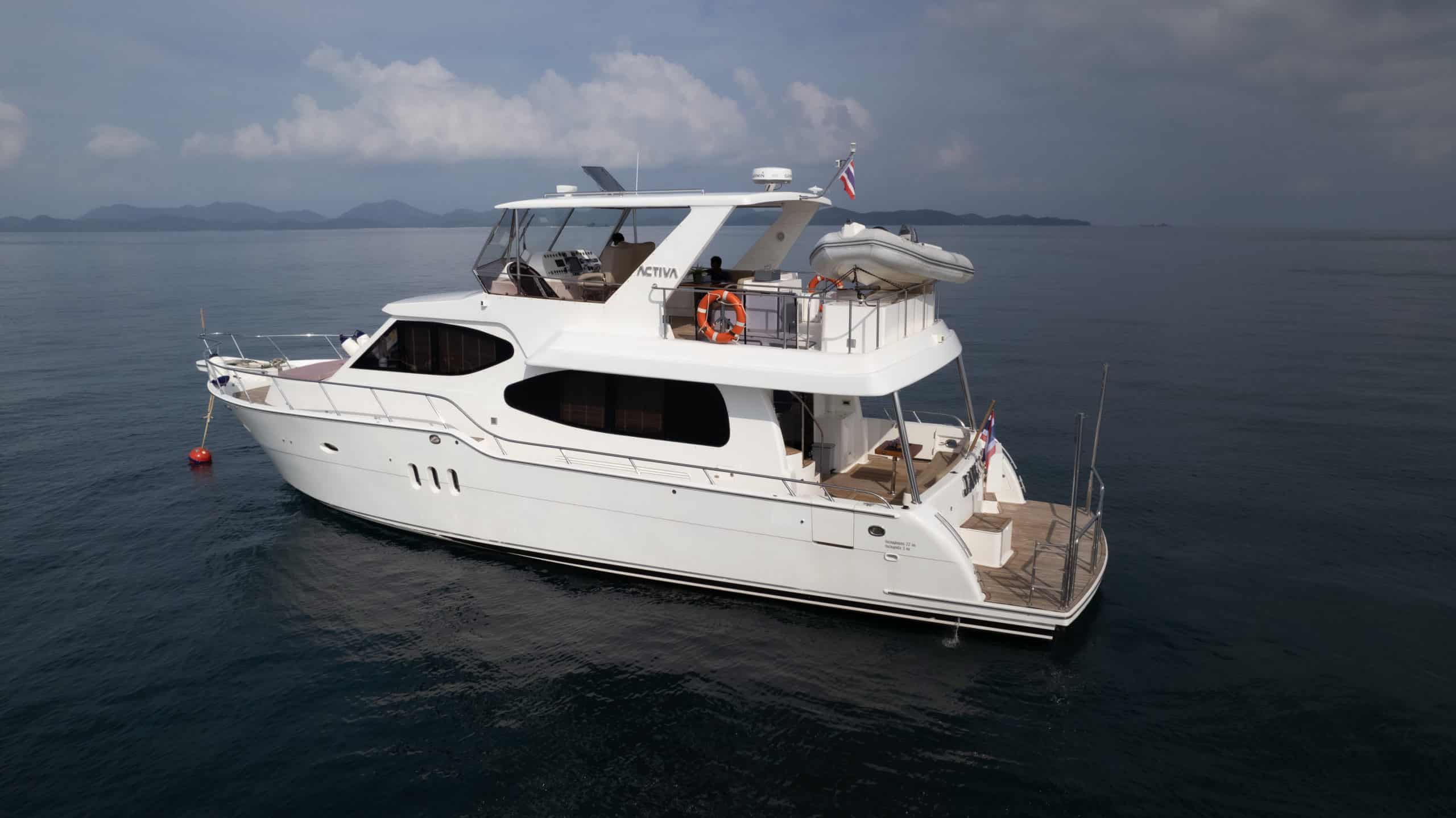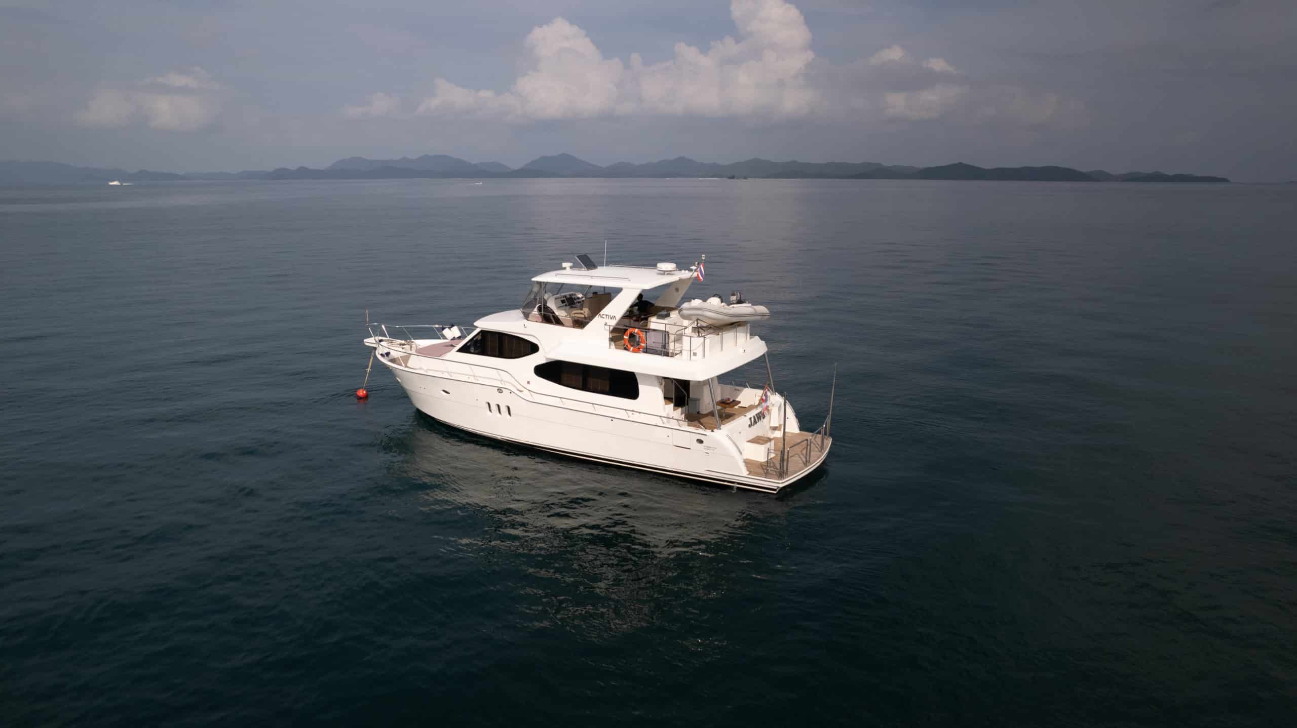 JAWSSS, a 2013 Activa 5800 motoryacht, is your passport to the Andaman Sea’s wonders. With a maximum speed of 15 knots and comfortable cruising at 12 knots, she’s not just a vessel; she’s an experience.