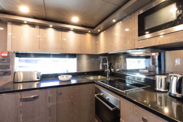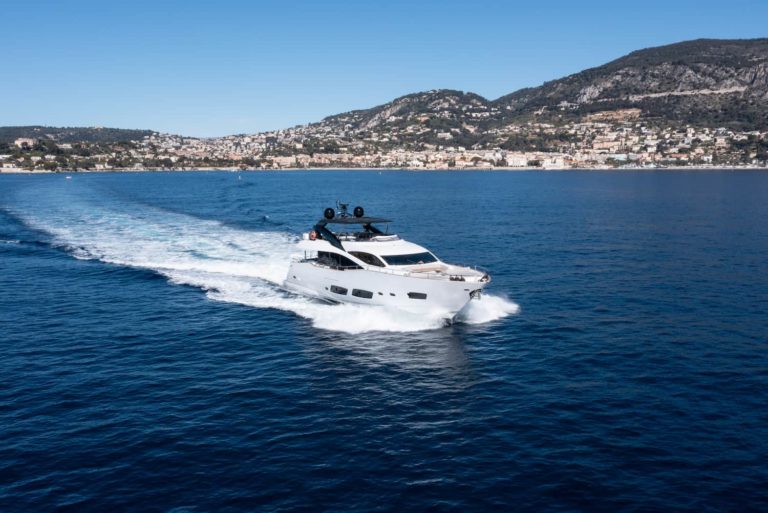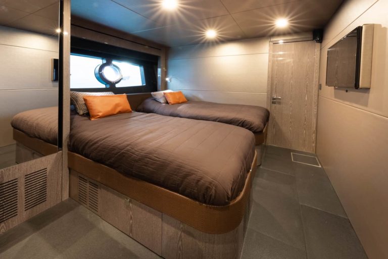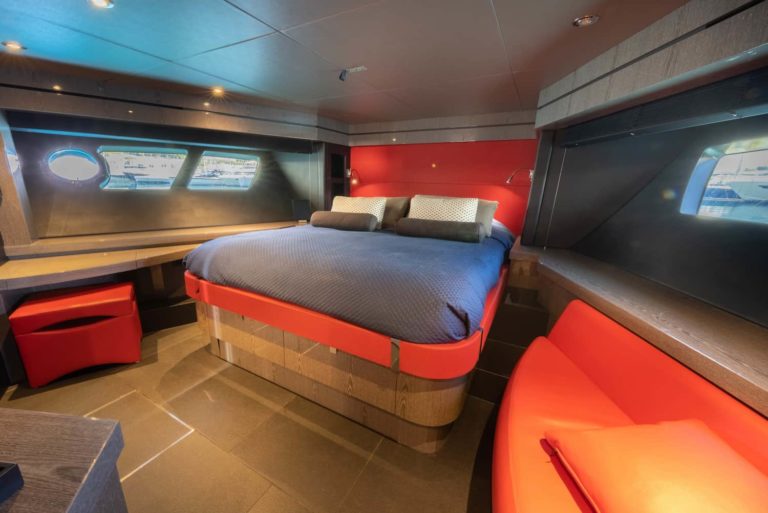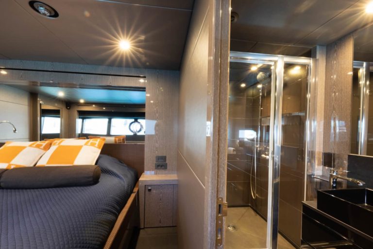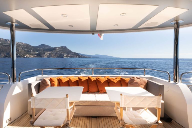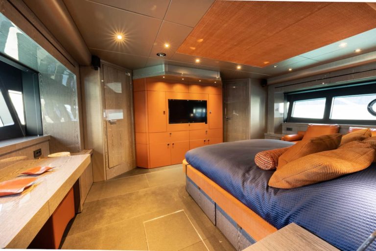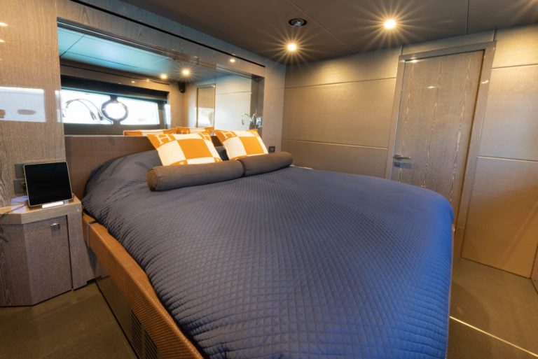 The interior is superbly attractive, spacious, elegant and benefits from wraparound glazing and full height windows that give you an undisrupted panoramic view through an optional drop-down saloon balcony. For those who love to stay connected while at sea, the Mirka offers a Starlink WiFi system and new sound system who delivers an unparalleled listening experience, with crystal clear sound. The dining area is ultra-modern, with clever use of space. On the foredeck, there are large sunpads and comfortable seating areas, perfect for al fresco dining. Overall, Mirka is a true masterpiece, blending speed, luxury, and comfort seamlessly for an unforgettable yachting experience