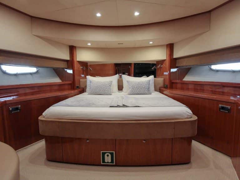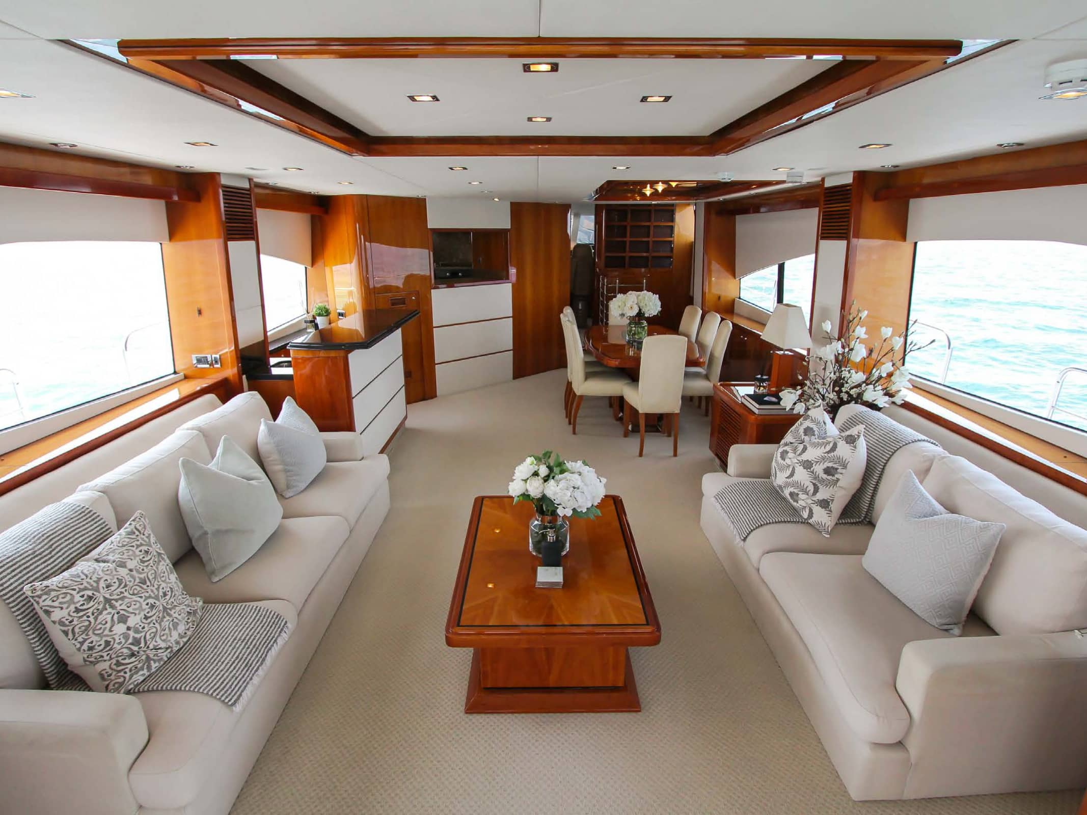 Her interior space features a dining table for up to 8 guests, a 70” curved TV with PlayStation, and Bar to entertain. Her cabin layout is perfect for you, your family, or your friends. She can sleep up to 10 guests spread throughout her Master, VIP, and 2 double cabins with Pulman-style beds.
