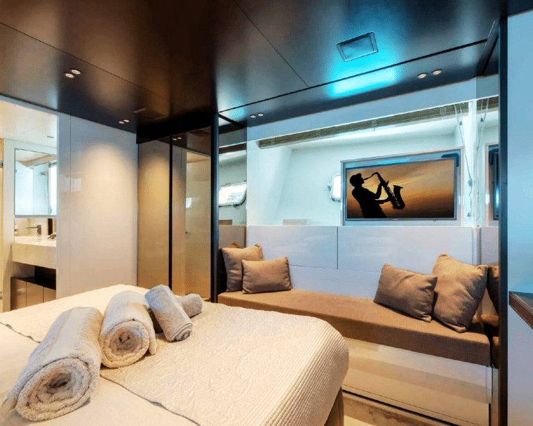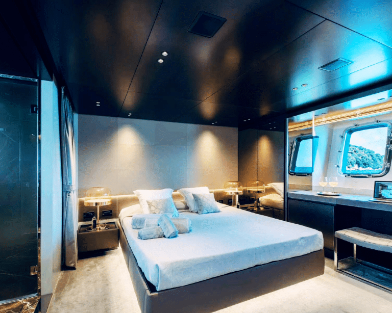 San Lorenzo SX88, a superbly crafted luxury yacht that embodies the esteemed San Lorenzo brand, setting new benchmarks in yachting excellence since its debut in 2018. The standout feature of the San Lorenzo SX88 lies in its cutting-edge fin stabilizers, guaranteeing silent navigation and unparalleled comfort, whether at anchor or in motion. Whether sailing through the crystalline waters of Dubai or relishing the tranquility of a secluded bay, every moment aboard ensures a seamless and serene experience.